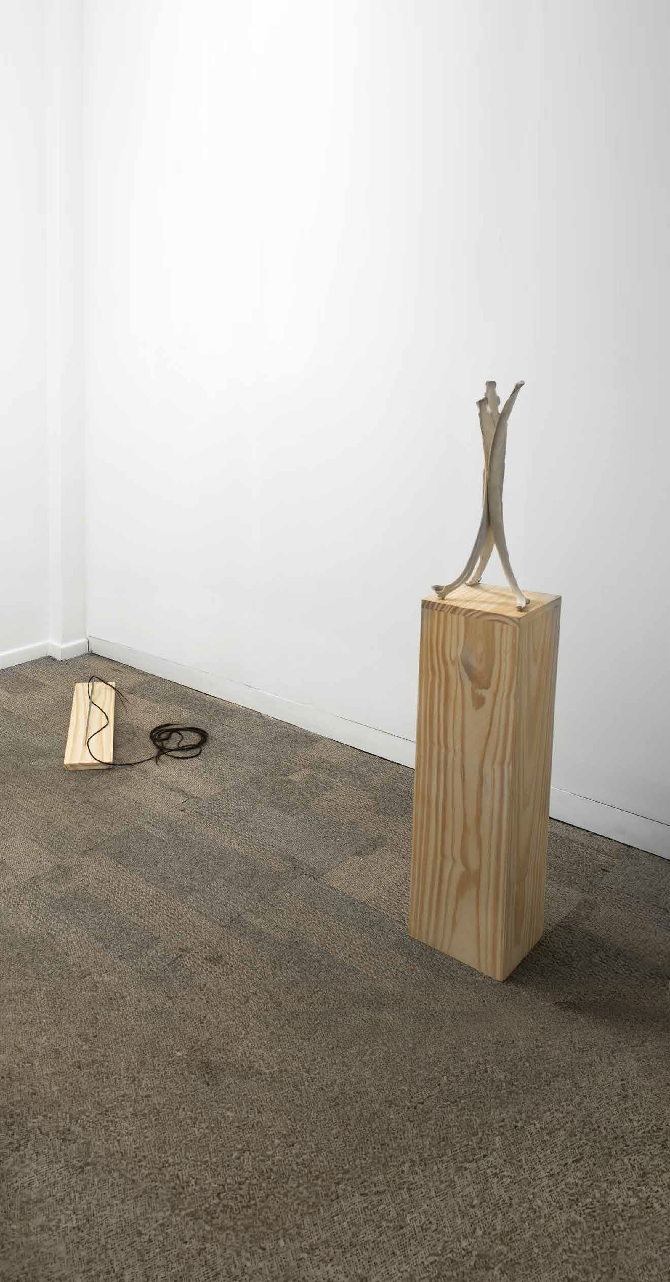 Vértebra, rulero, vidrio y pelo / Vértebra, mango de pincel para teñir, pelo y vidrio / Rama, ruleros, pelo y vidrio