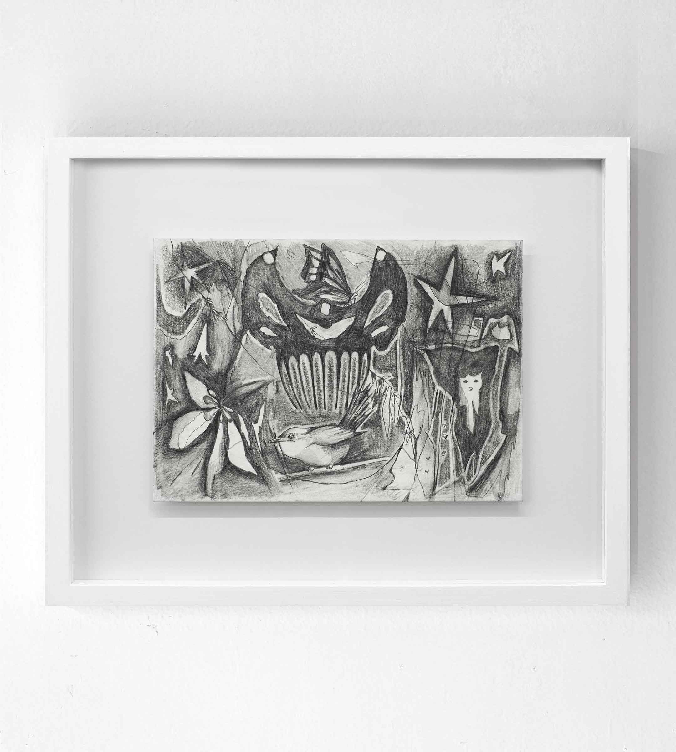 Durante una conversación con la artista Felicitas Castaños sobre su trabajo, surgen múltiples referencias y temas que se superponen. Cuchillos, peinetones, cuerpo, insectos, murciélagos, Alexander McQueen, calavera, magia , oscuridad.Accesorio, diseño , naturaleza.Me pregunto ahora ¿Que fue primero? ¿Cual de estas capas ejerció la mayor presión para la concreción de su imaginario? ¿Fueron quizá los enormes peinetones que usaba la sociedad rioplatense entre 1820 y 1830 y que ejercieron un gran impacto sobre la artista al conocerlos? ¿Fueron estos accesorios los que dispararon las asociaciones? ¿Accesorios que se incrustaban en el pelo como cuchillos en el cuerpo? O ¿accesorios que por su forma semejaban grandes murciélagos? Pretende la artista el rescate del murciélago como mamífero fundamental en el control de plagas y agente en la dispersión de semillas, o como personaje oscuro, hematófogo (vampiro) que habitaba los cuentos de terror?