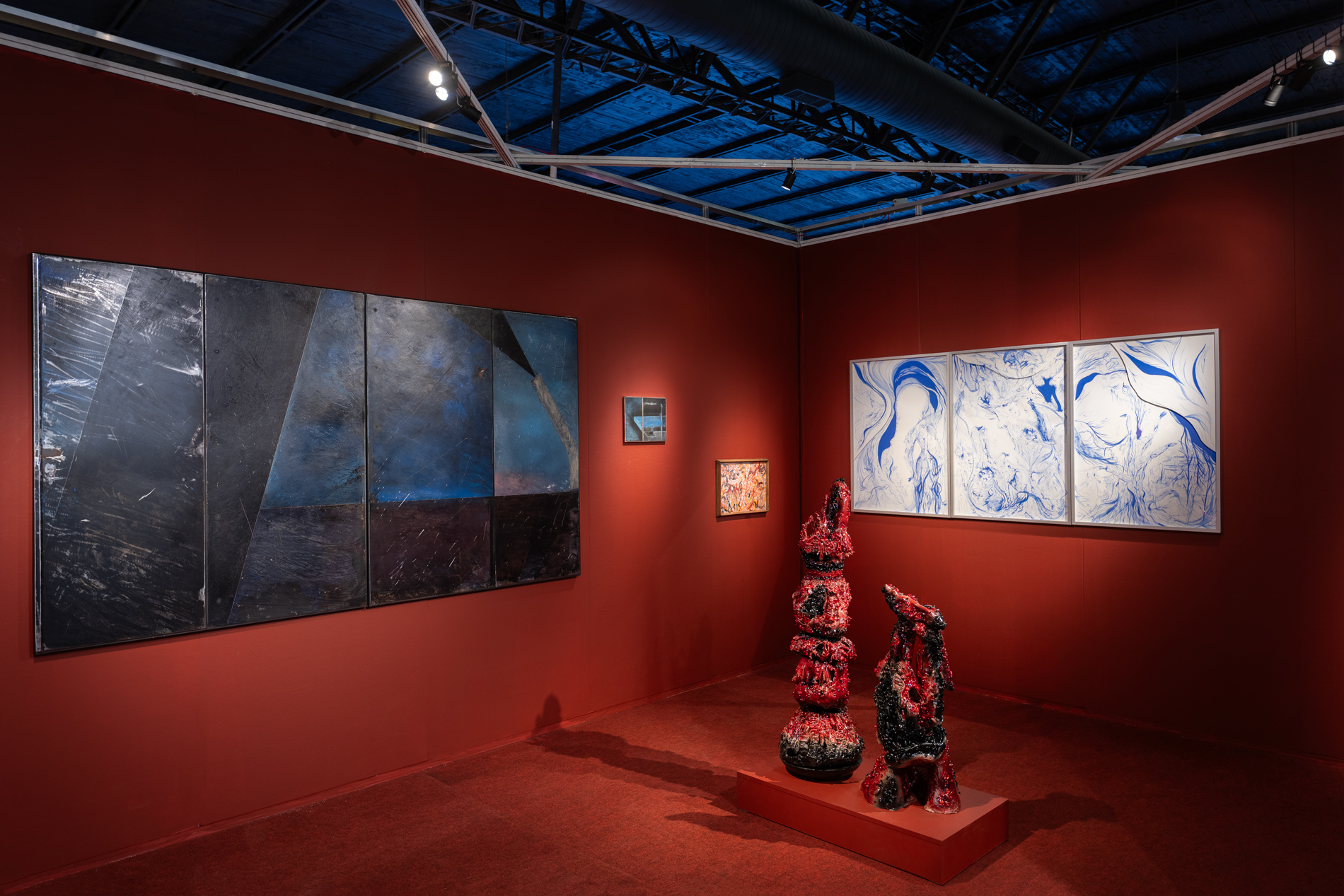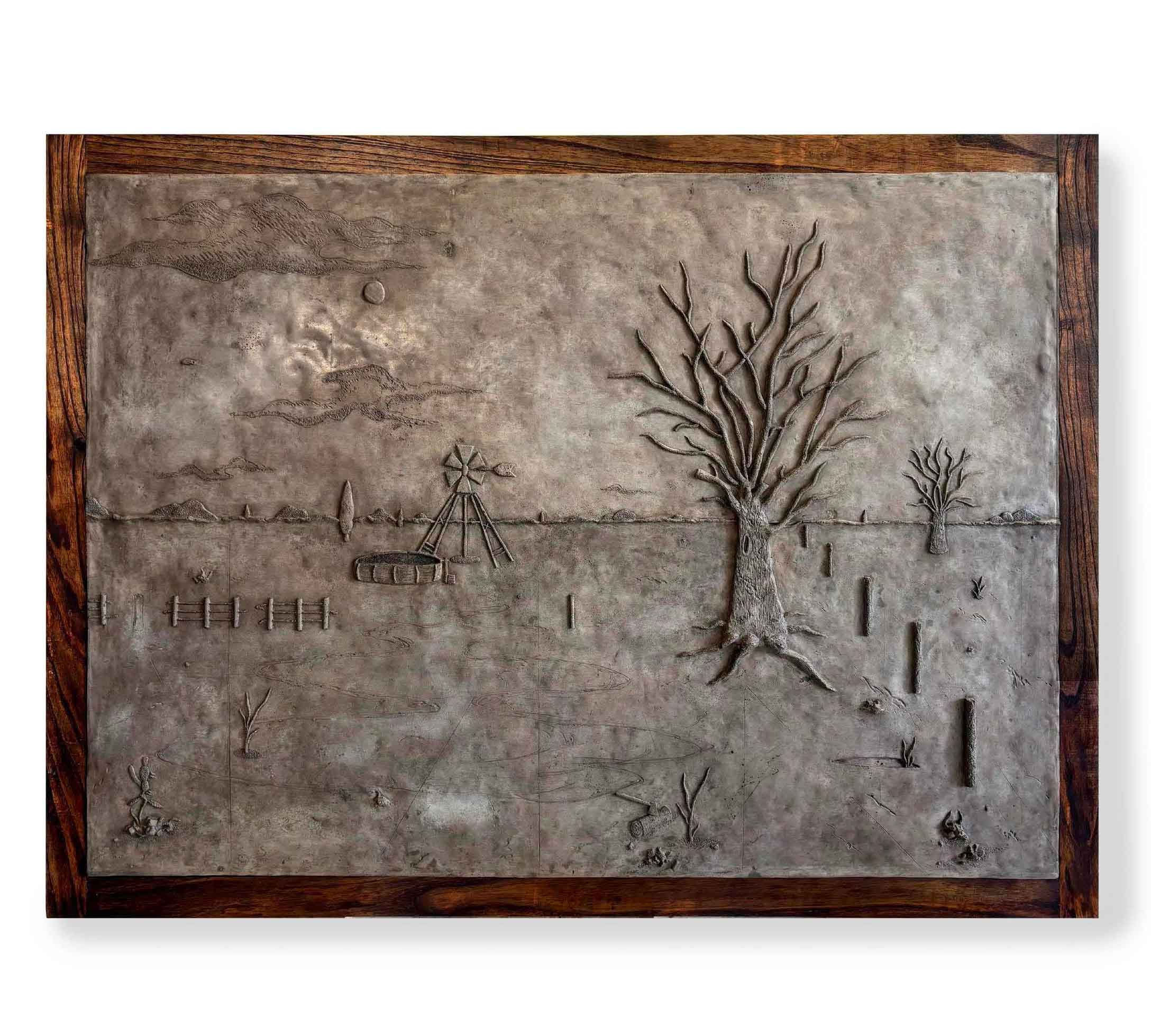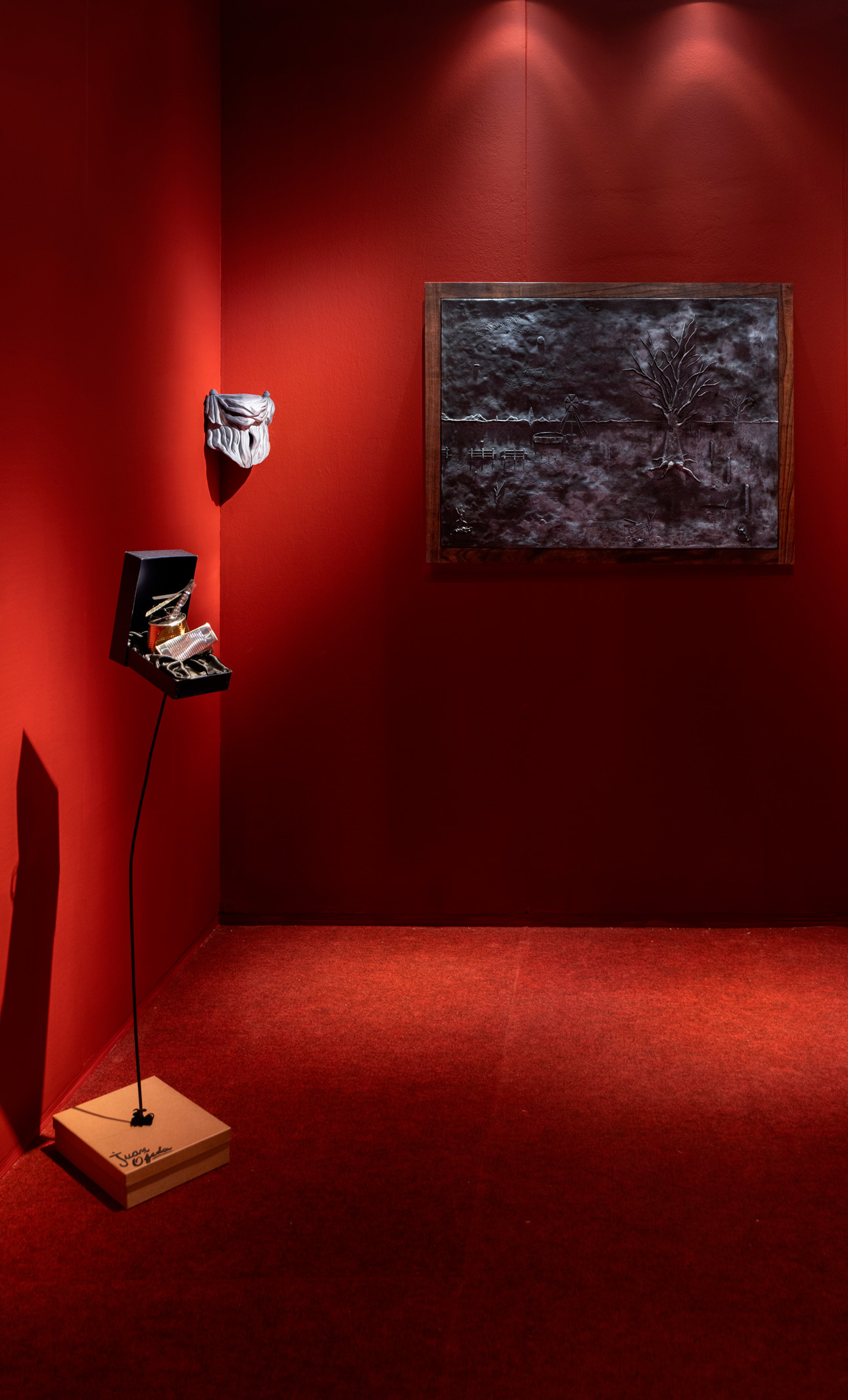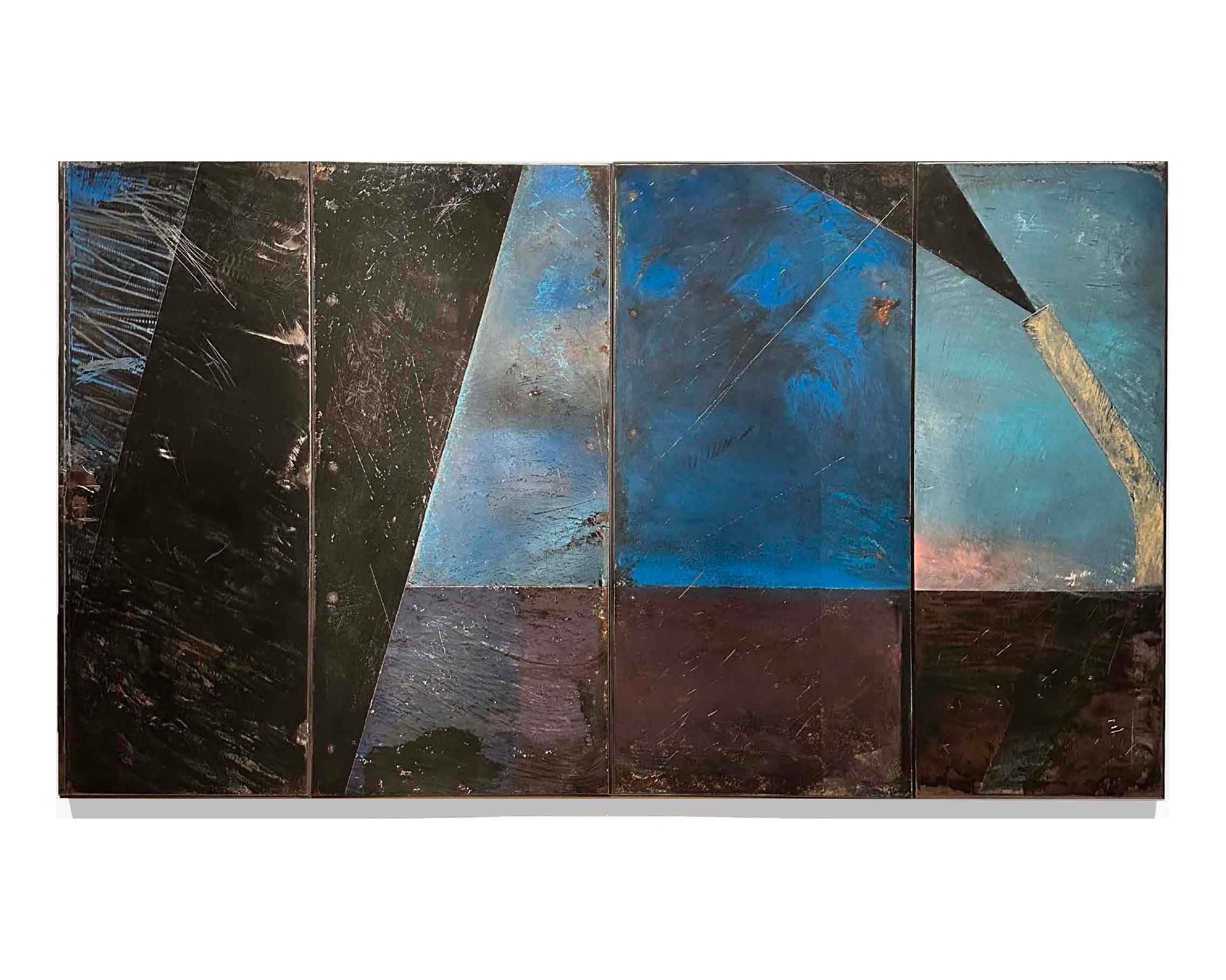 Óleo sobre chapa y estante metálico